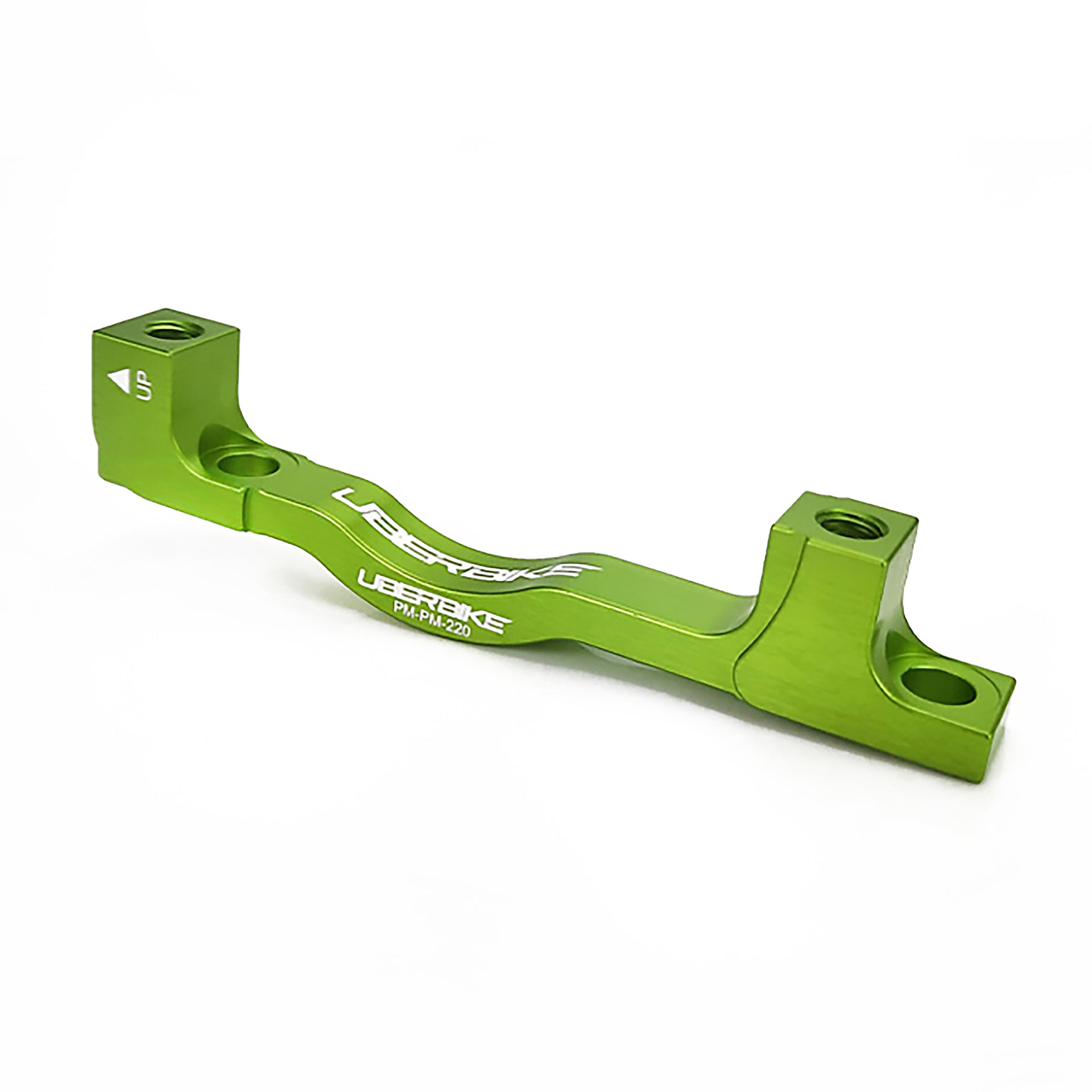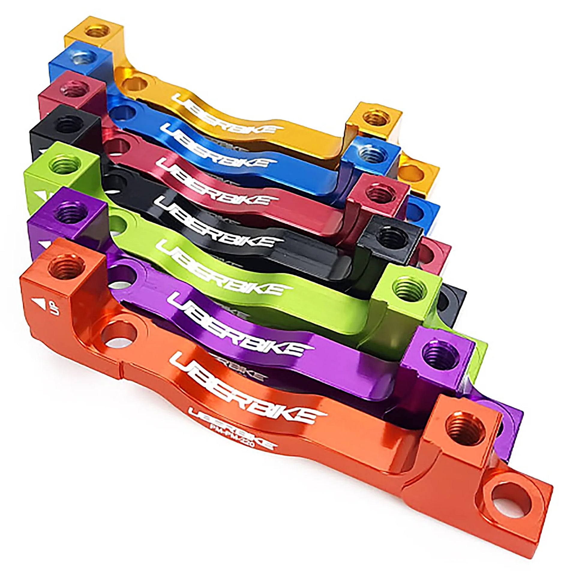 - Uberbike CNC machined 6061 T6 alloy disc brake adapter with laser-etched Uberbike logos.