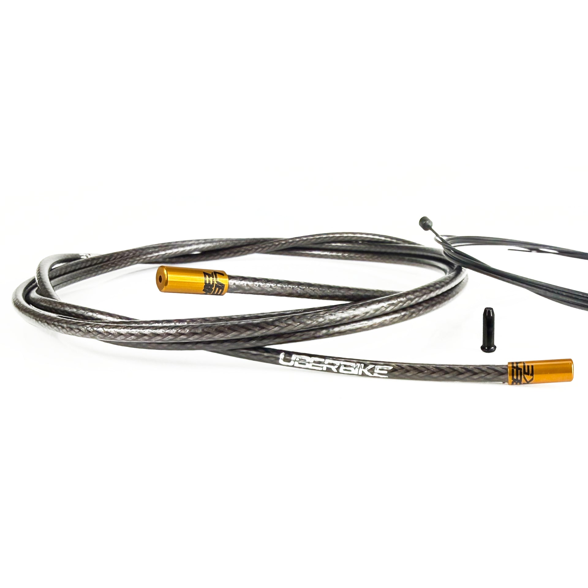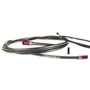 The Uberbike Racing Snake Slick Gear Cable Kit has been designed for use with Road Bike 2 x gear cable setups using cable actuation and comes supplied with all the parts you need to upgrade both the performance and looks of standard OEM cables, with the colour selection tool allowing you to custom tailor your choice of sealed alloy ferrules to perfectly match your setup. The lightweight compression-less housing uses a Kevlar fibre overbraid for flexibility and strength, with a pre-lubed liner for silky smooth operation. Sealed alloy ferrules are used to prevent contamination from entering the outer housing by using a custom brass insert and seal o-ring washer inside the ferrule, allowing friction-free performance. The Stainless Steel self-lubricating PTFE-coated inner wires are pre-stretched for maximum shifting accuracy, and feature an ultra-slick flat outer surface, ensuring smooth and precise performance in use.