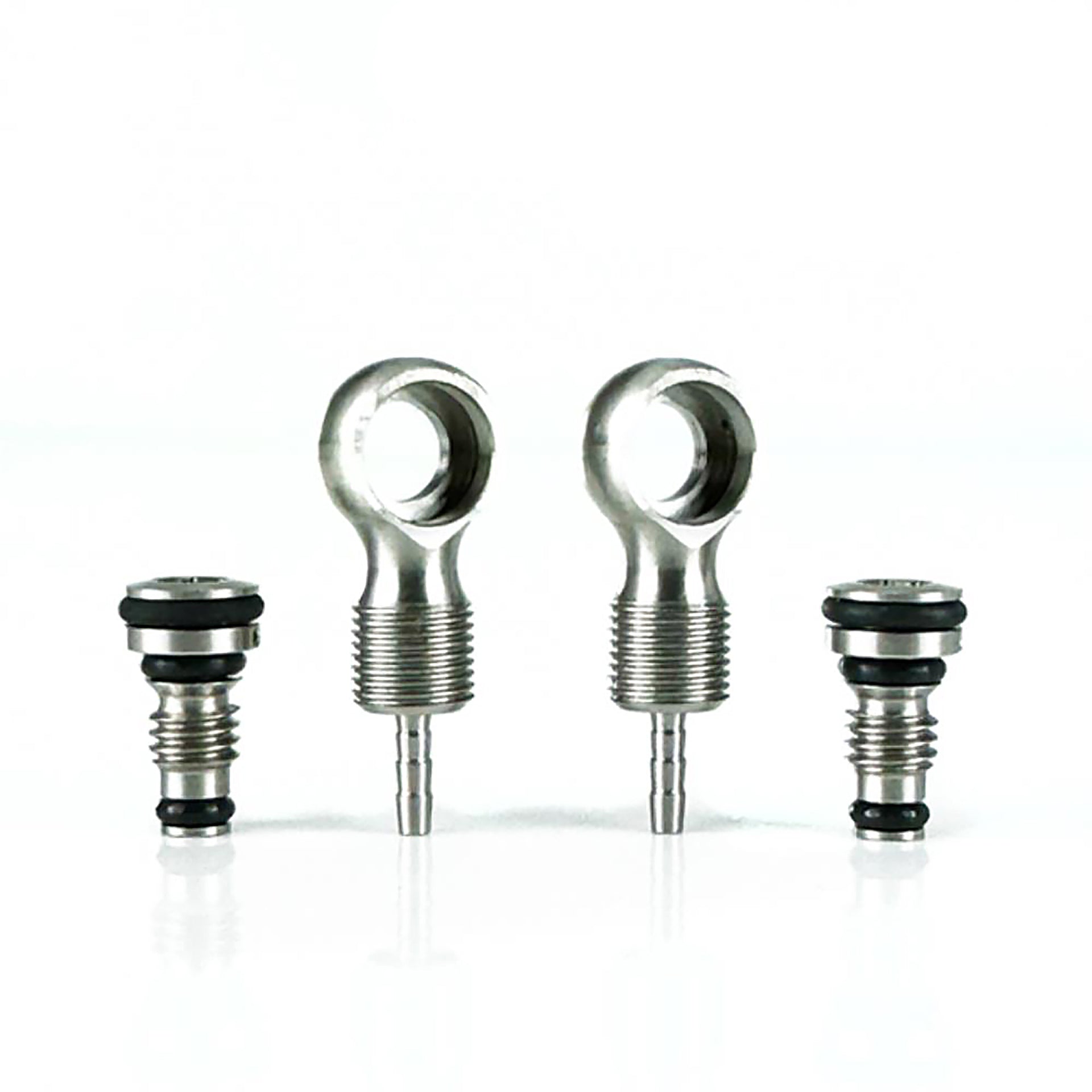 Compatible with 2.1mm internal diameter brake hoses, these replacement fittings work seamlessly with the Uberbike SRAM-Compatible Hydraulic Brake Hose System as well as current SRAM MTB and Road brakes using the narrower black banjo fastener (formerly known as Monoblock).
